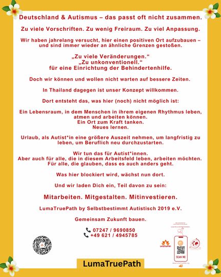 Der Wert dieses Ortes ist für die persönliche Entwicklung unermesslich. Er wird nicht nur Autisten helfen, sich selbst zu erkennen und zu akzeptieren, sondern auch das Umfeld auf eine tiefere