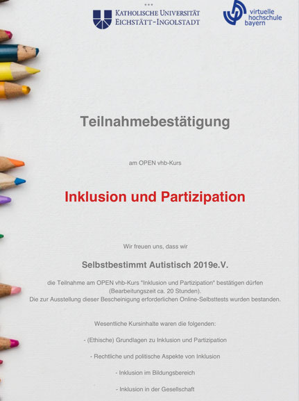 Mit der Unterzeichnung der Charta der Vielfalt setzt Selbstbestimmt Autistisch 2019 e.V. ein klares Zeichen für Vielfalt und Toleranz in der Arbeitswelt und signalisiert die Wertschätzung aller Mitarbeitenden unabhängig von Alter, ethnischer Herkunft und Nationalität, Geschlecht und geschlechtlicher Identität, körperlichen und geistigen Fähigkeiten, Religion und Weltanschauung, sexueller Orientierung und sozialer Herkunft.
